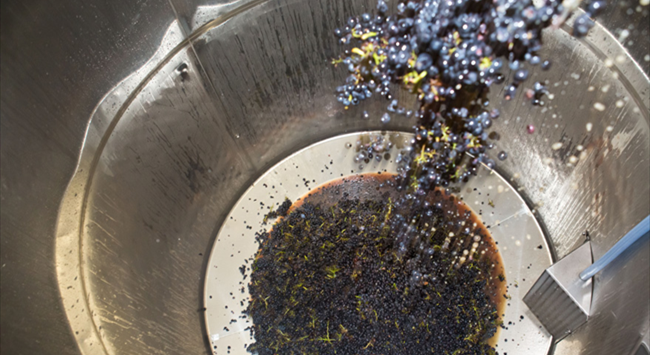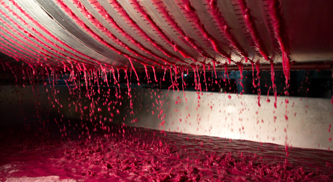 葡萄采收后會(huì)進(jìn)行去梗和破皮,但這不是必須工序,因?yàn)橛行┚魄f會(huì)特意保留果梗,保持果實(shí)顆粒完整,以便進(jìn)行整串發(fā)酵。破皮的過(guò)程需盡可能輕柔,避免破壞葡萄籽,釋放出苦油和單寧。