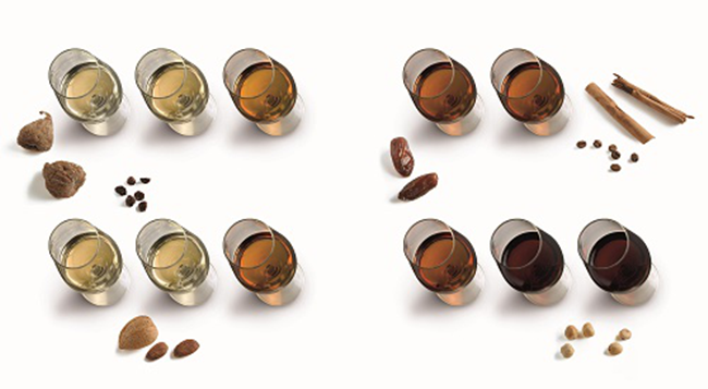 在陳釀階段,氧氣的作用和參與程度則因酒而異。對于使用惰性容器(如不銹鋼發酵罐)陳釀、希望保留品種本身特點的葡萄酒而言,氧氣會造成不利影響,需能少則少。對于使用橡木桶陳釀的葡萄酒來說,少量的氧氣大有裨益,它們可以通過木桶上的細小孔隙進入桶內并與酒液發生輕微的氧化反應,從而柔化葡萄酒的單寧,使酒液的口感更為細膩柔順,同時使其發展出更加復雜多樣的風味。對于西班牙雪莉酒(Sherry)和汝拉(Jura)黃酒(Vin Jaune)這樣的氧化型葡萄酒來說,氧氣的重要性不言而喻,釀酒師通常刻意采用未裝滿的釀酒容器來陳釀這些葡萄酒,以便讓更多氧氣進入桶內,使酒液發展出焦糖、堅果、咖啡、太妃糖等獨特的氧化風味。