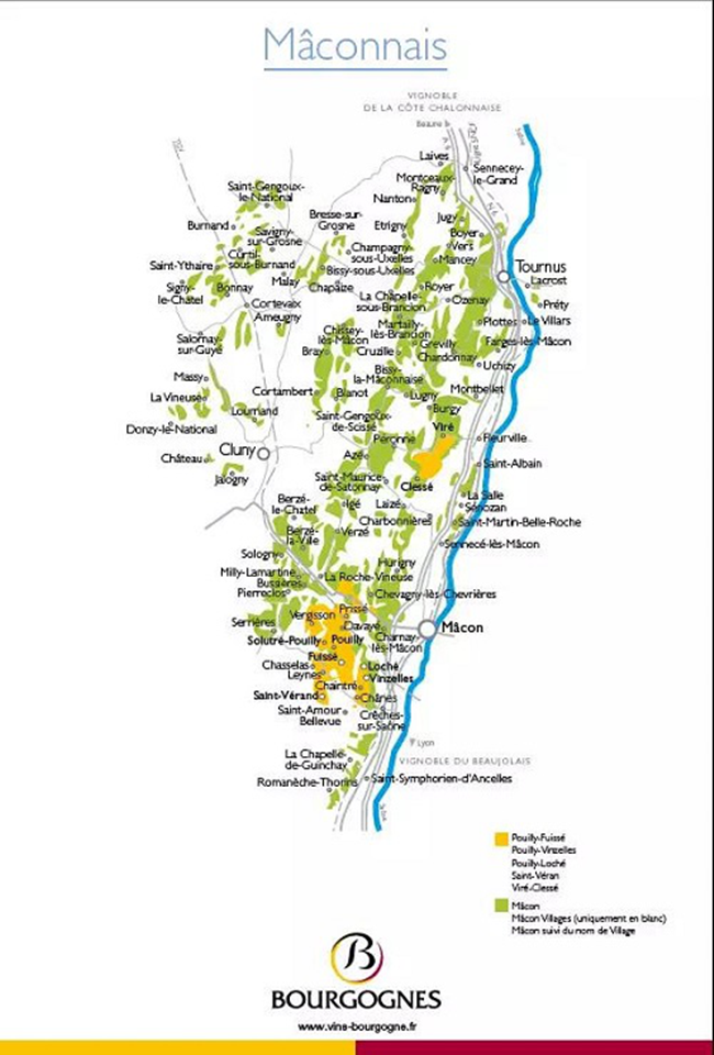馬孔區位于勃艮第的最南邊,溫暖的氣候造就了這里出產的莎當妮葡萄酒結構精良,充滿成熟的核果香。在馬孔區內,有一些村莊級產區,其中非常著名和與眾不同的是普伊-富賽(Pouilly-Fuissé)。該產區葡萄酒酒體非常飽滿,桃子和香瓜的風味可以與鮮醇口味和橡木桶帶來的堅果風味融合。