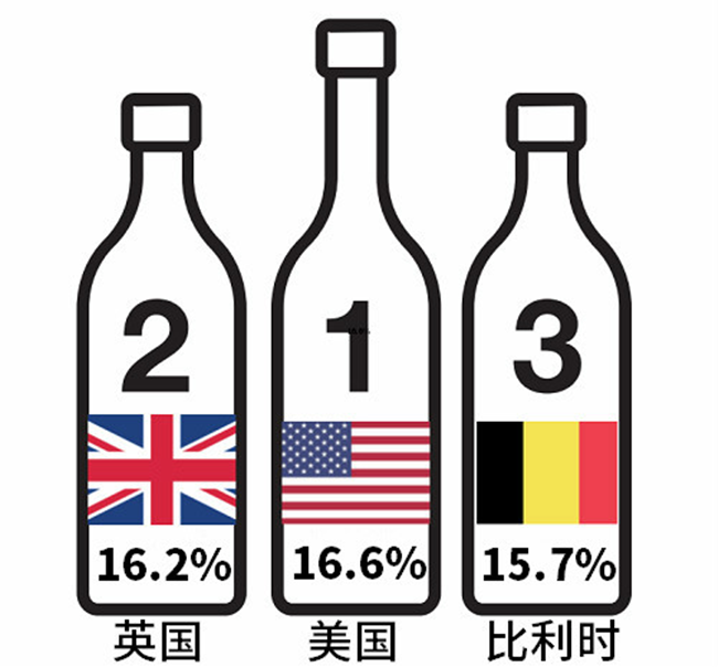 按大洲劃分的話,歐洲、北美和亞洲是主要出口地,羅納河谷葡萄酒分別有61%、24%和12%的出口量流向了這些地區(qū),其他的出口市場(chǎng)合起來(lái)僅占3%。若按國(guó)家劃分的話,羅納河谷葡萄酒的前三大貿(mào)易國(guó)則依次為美國(guó)(約1,465萬(wàn)升)、英國(guó)(約1,427萬(wàn)升)、比利時(shí)(約1,379萬(wàn)升),大概分別占據(jù)羅納河谷葡萄酒出口總額的16.6%、16.2%和15.7%。此外,中國(guó)市場(chǎng)可以說(shuō)是一匹“黑馬”,2019年的出口量約為697萬(wàn)升,占據(jù)的出口份額從2014年的第八位躍升至現(xiàn)在的第四位,而這得益于該產(chǎn)區(qū)對(duì)中國(guó)市場(chǎng)的重視與持續(xù)發(fā)力。