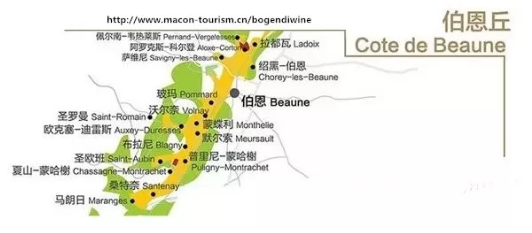 圍繞在伯恩Beaune周圍的產(chǎn)酒村,如沃爾奈和波瑪,卻以種植黑皮諾為主。伯恩丘涵蓋了8個特級園,除了科爾登園Corton可以生產(chǎn)紅葡萄酒之外,其余7個特級園均只產(chǎn)白葡萄酒。