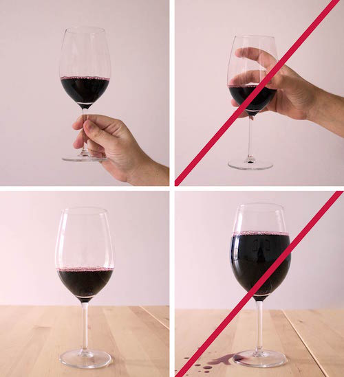 嚴(yán)格說來,葡萄酒持杯時(shí),應(yīng)該用手指握住杯柱或杯底座,如果直接手握杯肚,由于手溫高于侍酒溫度,會(huì)導(dǎo)致酒液升溫,從而影響口感。