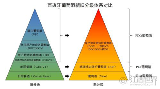 早在1932年,西班牙就仿照法國(guó)的原產(chǎn)地命名控制(Appellation d’Origine Controlee,簡(jiǎn)稱AOC)制度,創(chuàng)立了原產(chǎn)地命名(Denominacion de Origen,簡(jiǎn)稱DO)制度。2003年,西班牙在原有制度的基礎(chǔ)上,又建立了類似法國(guó)的葡萄酒分級(jí)體系。這一體系從低至高共分為6級(jí):