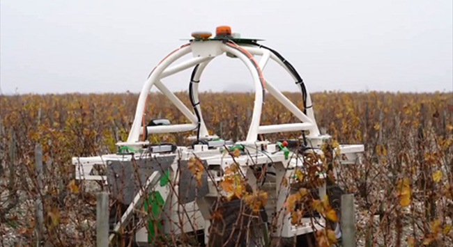 葡萄園除草機(jī)器人是較為常見和基礎(chǔ)的機(jī)器人,它們能夠快速精準(zhǔn)地去除雜草。除此之外,由于體型較輕且?guī)в兄悄茏R別功能的特點,這類機(jī)器人對土壤和生態(tài)的破壞極小。2017年,與木桐酒莊(Chateau Mouton Rothschild)同門的克拉米倫酒莊(Chateau Clerc Milon)便在其葡萄園內(nèi)測試了一款叫作“泰德(Ted)”的除草育土機(jī)器人。