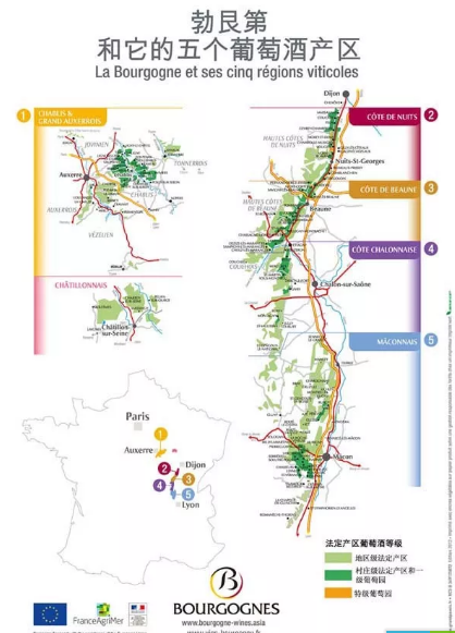 勃艮第的產(chǎn)區(qū)主要是以下五個(gè)