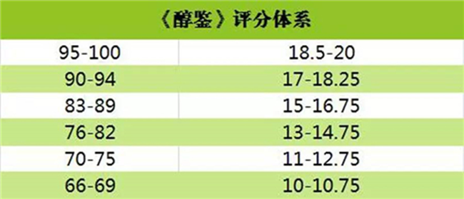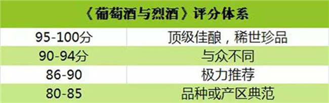 (4)《葡萄酒與烈酒》采取 100 分制,起始分為 80 分,共分為 4 個檔次。