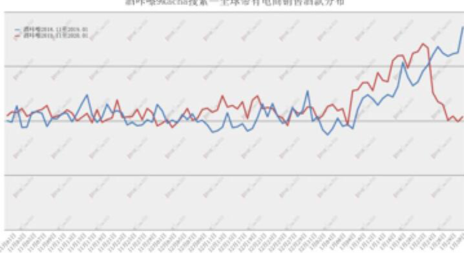 在Nov 2019 to Jan 2020——Nov 2018 to Jan 2019階段,Baidu搜索量平穩增長,作為傳統節日的春節后因假期及外部環境原因開始下滑。而同一時期內,9kacha搜索量增長明顯,9kacha用戶群體中,約1/3為葡萄酒行業用戶,受春節、提前進入假期及外部環境原因,搜索量開始下滑,整個葡萄酒行業受假期及外部環境原因影響更加明顯。