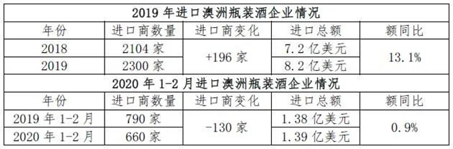 而因為抗沖擊能力弱,當遭遇疫情沖擊導致市場低迷的情況,部分小微企業(yè)或?qū)⒕痛送顺鑫枧_。以今年1-2月為例,進口澳洲瓶裝酒企業(yè)較同期減少的企業(yè)數(shù)量(130家)中絕大多數(shù)為小微企業(yè),但同時也有不少甚至更多的小微企業(yè)聞風而來“補位”。