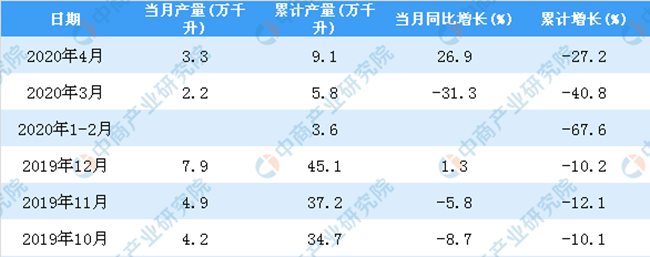 2019-2020年4月全國葡萄酒產量統計數據