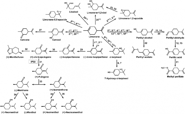 葡萄與葡萄酒中單萜類化合物能夠賦予葡萄與葡萄酒濃郁獨(dú)特的芳香,如玫瑰、桂花、鳳梨及蜂蜜等香味。檸檬烯是葡萄與葡萄酒中天然存在的具有代表性的單帖香氣物質(zhì)之一,在微生物作用下能夠衍生出數(shù)十種單萜類化合物。闡釋檸檬烯生物合成途徑及衍生化過程有助于理解葡萄與葡萄酒萜烯類香氣物質(zhì)的形成機(jī)制,為利用代謝工程進(jìn)行葡萄育種研究,以及采用工程菌調(diào)控葡萄酒品種香氣物質(zhì)組成開展前瞻性研究提供理論依據(jù)。此外,利用合成生物學(xué)和代謝工程策略構(gòu)建高效檸檬烯及其衍生物微生物細(xì)胞工廠能夠?yàn)槠咸褕@廢棄物高值化再利用,實(shí)現(xiàn)葡萄酒產(chǎn)業(yè)提質(zhì)增效提供新思路。