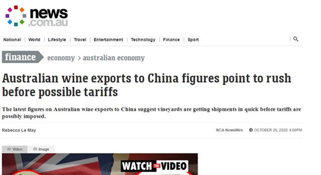 澳新網(wǎng)報道,根據(jù)澳洲葡萄酒機(jī)構(gòu)(WA),2019年9月至2020年9月,澳洲出口至中國(包括中國香港、澳門地區(qū))的葡萄酒價值達(dá)到了創(chuàng)造紀(jì)錄的125億元。