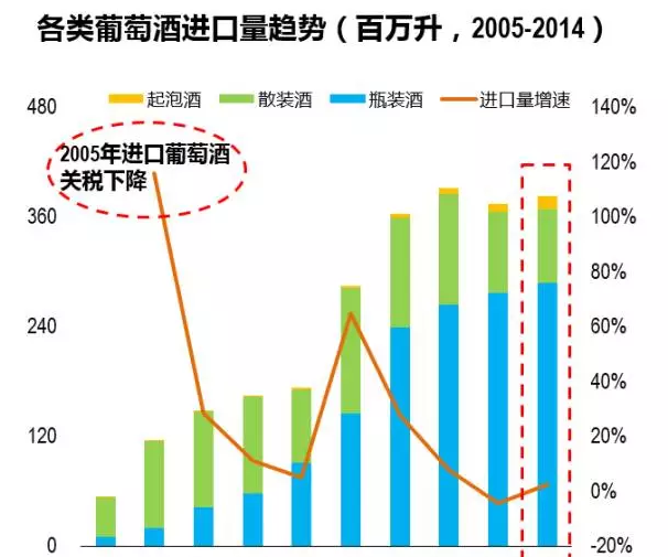 2015年上半年葡萄酒進口量味245.95百萬升,同比增長43.6%;2015年上半年葡萄酒進口額為9.29億美元,同比增長30.7%。