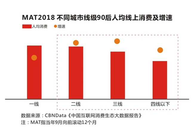 二線及以下城市的“小鎮(zhèn)青年”群體消費增速快于一線城市,消費潛力巨大。