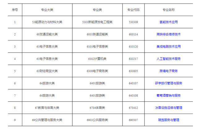根據(jù)《普通高等學(xué)校高等職業(yè)教育(專科)專業(yè)設(shè)置管理辦法》,在相關(guān)學(xué)校和行業(yè)提交增補(bǔ)專業(yè)建議的基礎(chǔ)上,教育部組織研究確定了2019年度增補(bǔ)專業(yè)共9個(gè),現(xiàn)予公布,自2020年起執(zhí)行。