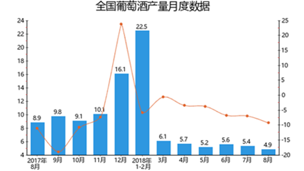 2018年1-8月全國葡萄酒產量統(tǒng)計分析