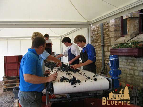 采摘后的葡萄將在釀酒師與工人、機(jī)械的配合下,完成從“出生”到“成長(zhǎng)”的轉(zhuǎn)變過(guò)程。從葡萄的破皮去梗、壓榨處理、發(fā)酵、澄清、深層過(guò)濾、冷穩(wěn)定、灌裝等每一個(gè)工藝流程,無(wú)不滲透著藍(lán)菲釀酒師的熱情和用心。