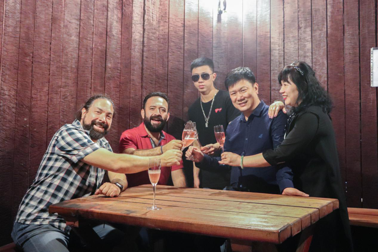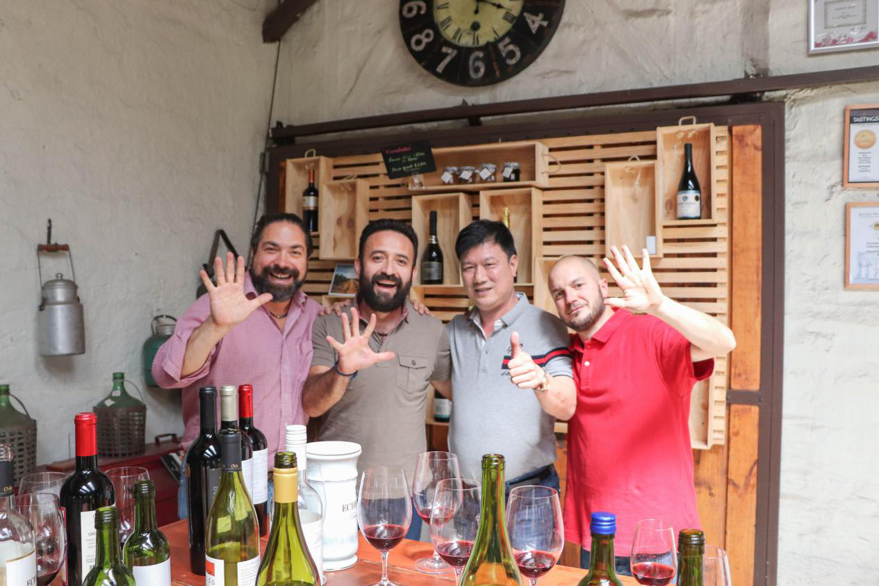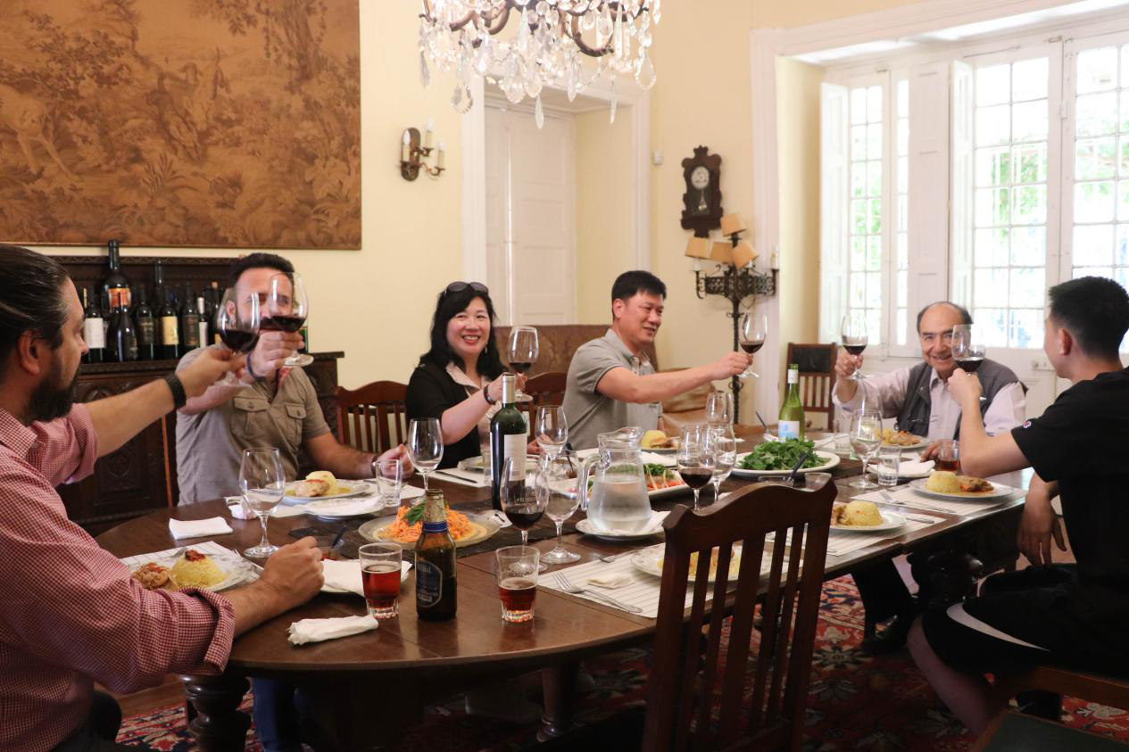 (酒莊莊主Robert先生、Francisco先生設宴接待藍菲酒業(yè)董事長莊榮昌先生、執(zhí)行董事郭紹滿等人)