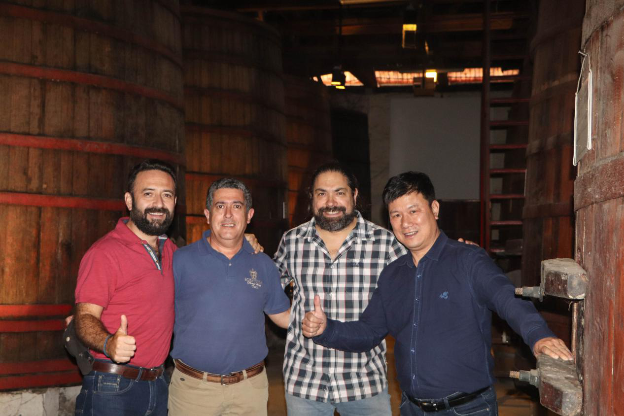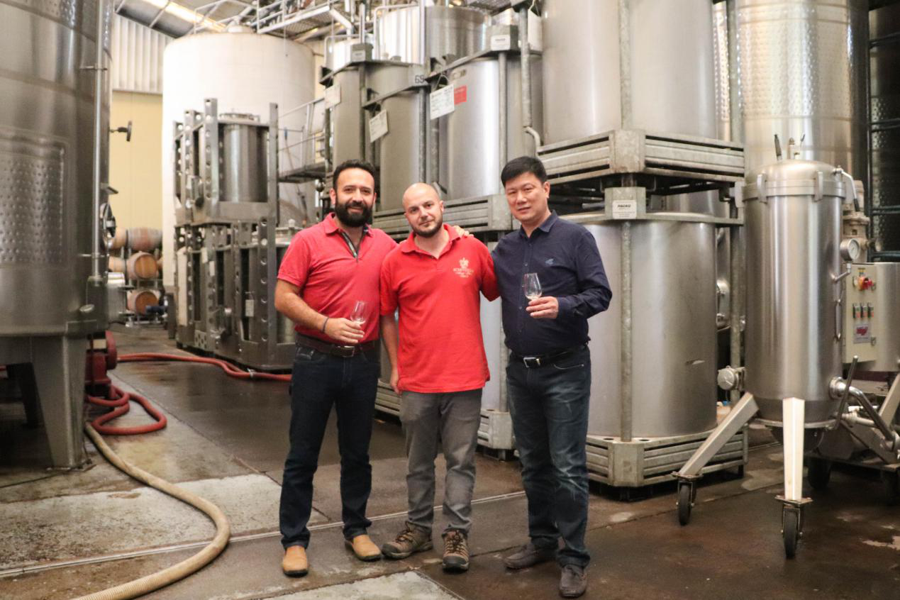 (藍菲酒業(yè)董事長莊榮昌先生、執(zhí)行董事郭紹滿與酒莊工作人員合影留念)
