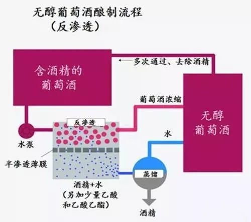 它同樣是按照葡萄酒酒的生產工藝釀造出來的、只不過是在裝瓶之前,利用只允許溶劑透過的半透膜,先將葡萄酒中的絕大部分酒精與其他物質分開,再通過蒸餾的方式將酒精分離。